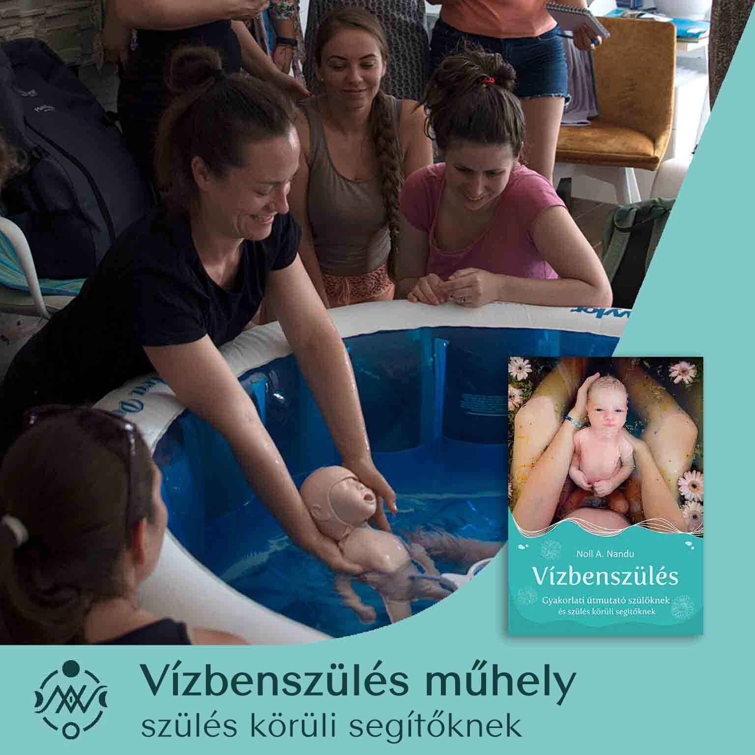 A műhely a gyakorlatközpontúság maximumát nyújtja, mivel a résztvevők valódi, vízzel telt szülőmedence körül „segédkezve” sajátíthatják el a vízbenszülés kísérésének fortélyait.